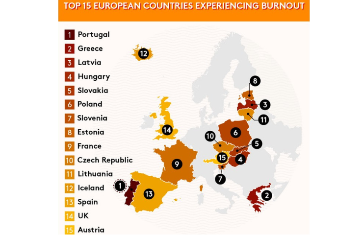 Conforme o disposto no portal “Small Business Prices“, que realizou os cálculos com base no índice de felicidade mundial de cada país, assim como, o salário médio anual e as horas de trabalho semanais, tornando assim Portugal, dos 26 países avaliados nesta investigação, o país onde existem mais probabilidades dos trabalhadores sofrerem desta patologia.