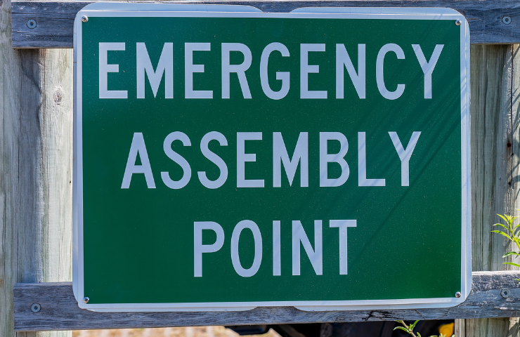 As placas de sinalética de emergência devem mostrar percursos de evacuação. Devem ser instaladas de forma perpendicular ao sentido da evacuação e ainda nas zonas de mudança de direção.